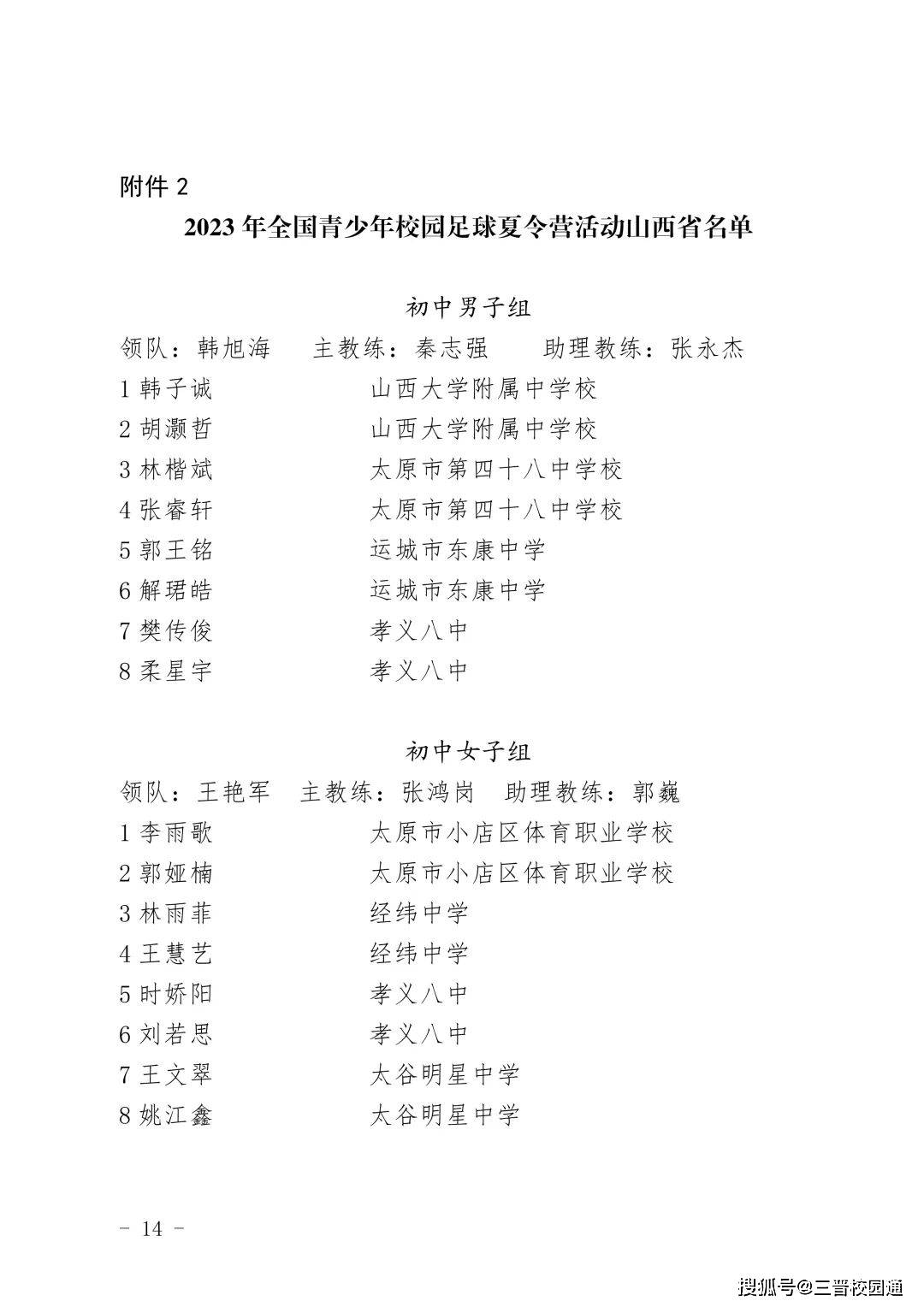 (一)2023年山西省校园足球赛初中男子、女子组前四名队伍推荐的符合要求的队员,每组别每队推荐2人,共16人。