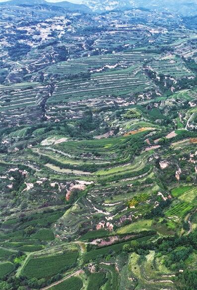从蜿蜒的山路拐入乡道,大片的粉色、白色格桑花在甘草峁村口盛放。格桑花海后,层层叠叠的梯田景观与窑洞民居静静呈现。山谷沟壑纵横,幽静中鸡犬相闻,田园景色令人沉醉。山中缓行,处处皆景。“看,这里有好多苹果!”看到大片果园,对面自驾而来的一家人惊喜地呼喊。