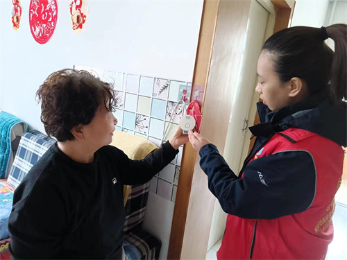 “付爷爷,你如果在家里遇到了危险或健康情况,只要摁下手中这个无线报警器的按钮,你的子女和社区的工作人员就会知晓,并能马上前来援助。”11月6日,杏花岭区敦化坊街道晋安西街社区网格员侯卫霞,来到美好家园东区5号楼70岁独居老人付彬家里,指导他使用智能居家养老安全系统。在侯卫霞的细心指导下,老人很快就学会了,社区医护人员还给老人进行了免费体检,并在社区里帮老人建立了健康档案。