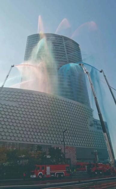 太原市消防救援支队在华宇百花谷进行超高层综合体建筑灭火救援综合实战演练。申波 摄