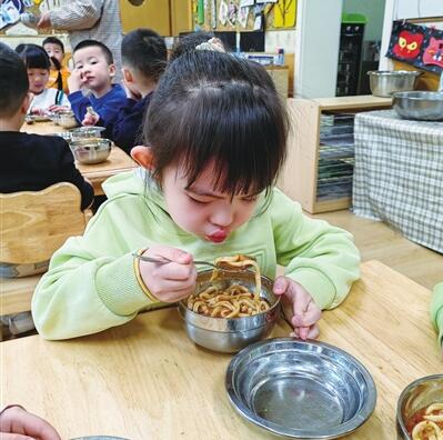 说起育蕾幼儿园的伙食,上世纪80年代出生的太原后生小白至今还能如数家珍,三年的幼儿园生活,一日三餐是最闪亮的记忆,“尤其是汤汁浓郁的西红柿鸡蛋面,香得不行。”想想那个画面仍能唤醒味蕾。小白的儿子,如今正在育蕾幼儿园上大班,与爸爸比起来,红烧狮子头、冬瓜烧肉、肉沫豆腐等,都是他的最爱。