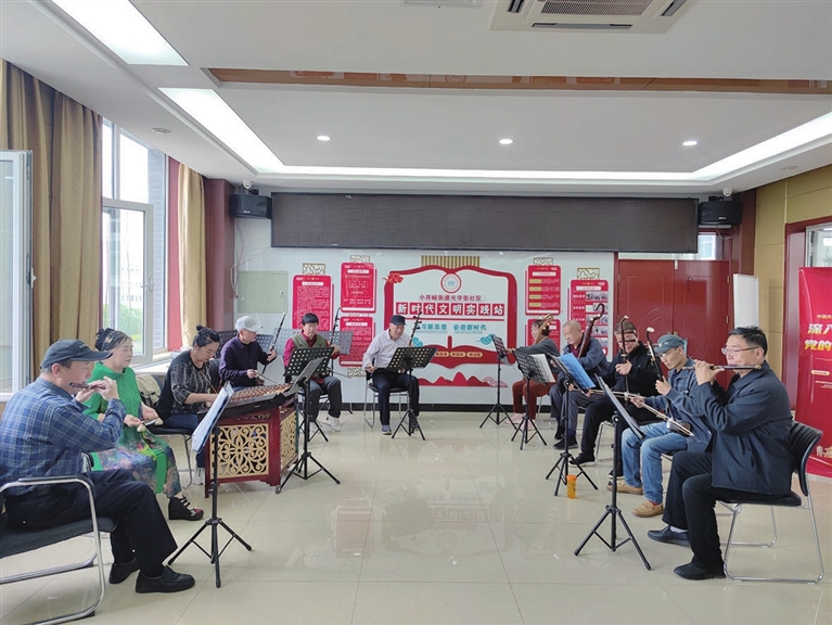 79岁的刘大爷喜欢吹葫芦丝,怕吵到邻居,总是去户外空旷处。最近太冷了,外面站一会儿手脚冰凉,兴致全无。爱音乐的,不止他一人。社区腾出一间活动室,供居民吹拉弹奏,还开设了讲座,立即引来许多人。葫芦丝、二胡、长笛……各色乐器响起,奏出优美的冬日旋律。